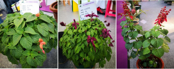 一串红课题组自育品种‘彩铃紫’、‘彩铃橙’及种间杂交一串红亮相展会。