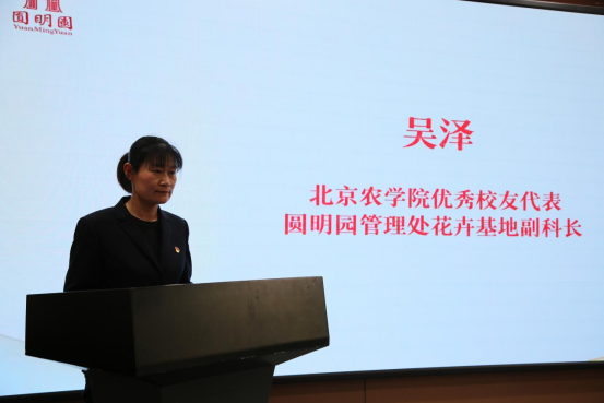 优秀校友代表、圆明园管理处花卉基地副科长吴泽结合一线工作经历发言。